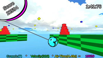 Move with WASD and look around with the left and right arrow keys. click and hold Q to grapple on to a grapple point and swing off of it. You only have 2:30 to get as many points as possible!
